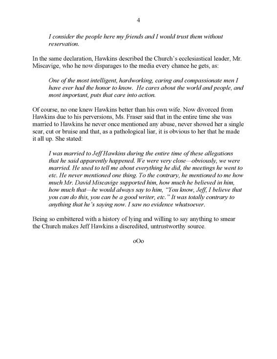 But lying is nothing new for Hawkins, who has been a discredited anti-Scientology media source for years. His fabricated stories about having been a victim of violence as a staff member were debunked more than a decade ago. Not once did he produce independent witnesses, police reports, medical reports, photos or anything else to corroborate his tales—not one shred of evidence. He has been making up stories to justify his malfeasance and incompetence.